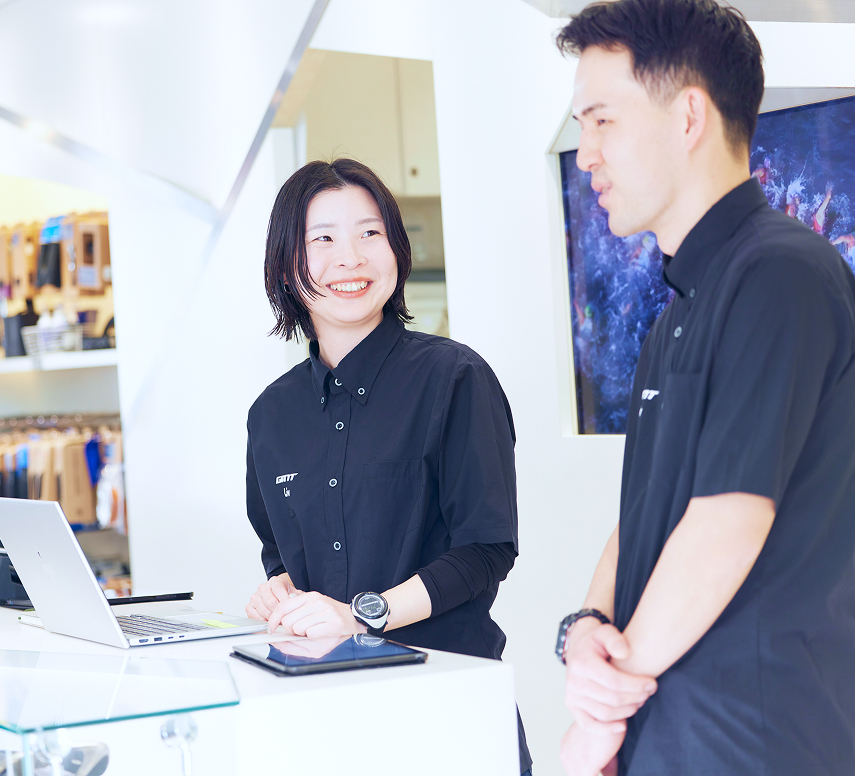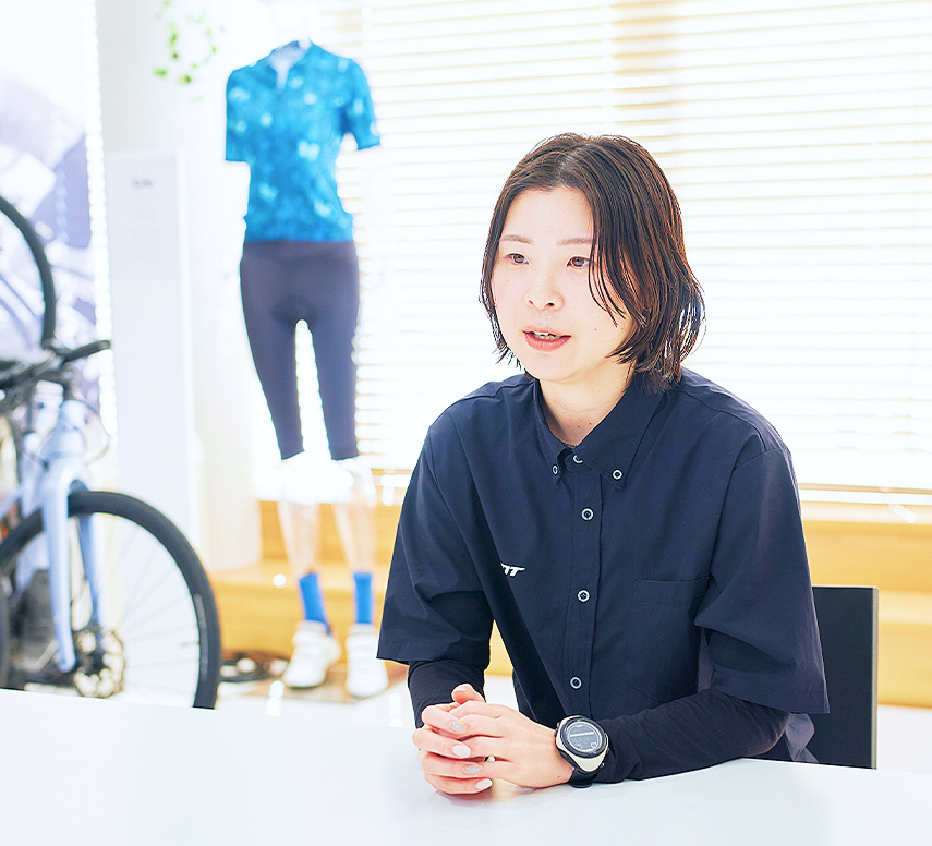 私たちの店舗は2階が女性専用ブランド「Liv(リブ)」のフロアになっており、多くの女性サイクリストが来店されます。女性店長である自分の強みを活かし、女性が一人でも気軽に入りやすい雰囲気づくりや、女性向けイベントの企画に力を入れています。 この会社は、販売職には珍しくお盆や年末年始にしっかり店舗休業があり、季節ごとの連休も取れます。長く働き続けられる環境だからこそ、じっくりと腰を据えて、お客様やスタッフと向き合う店づくりができるのだと思います。